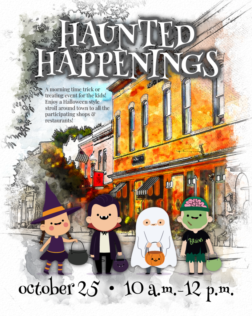 Join us Downtown for a morning time trick or treating event for kids! Dress up in your favorite Halloween costume and stroll around town for sweet treats from all the participating shops and restaurants.