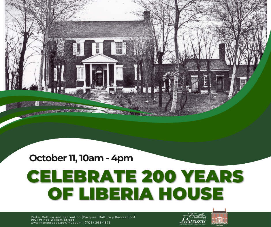 Celebrate 200 years of Liberia House on Saturday, October 11, from 10 AM - 4 PM! This year, the Manassas Museum is celebrating Liberia’s long and complicated history. From hunting ground to Civil War battleground, dairy farm to City park, Liberia has been many things to many people throughout all of its eras. Join us for a day of family-friendly fun that will showcase all of Liberia’s rich and diverse history and tell the stories of the many people who lived and worked there.